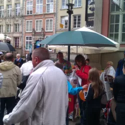 Chwilkę stałem, przyglądałem się, w większości ludzie dostrzegając tę barwną postać zatrzymywali się i pytali czy mogą zrobić sobie zdjęcie ze znaną postacią z TV. Obok sprzedawano lody czy inne słodycze oraz różne jarmarczne produkty, w końcu to dosyć popularne turystycznie miejsce.