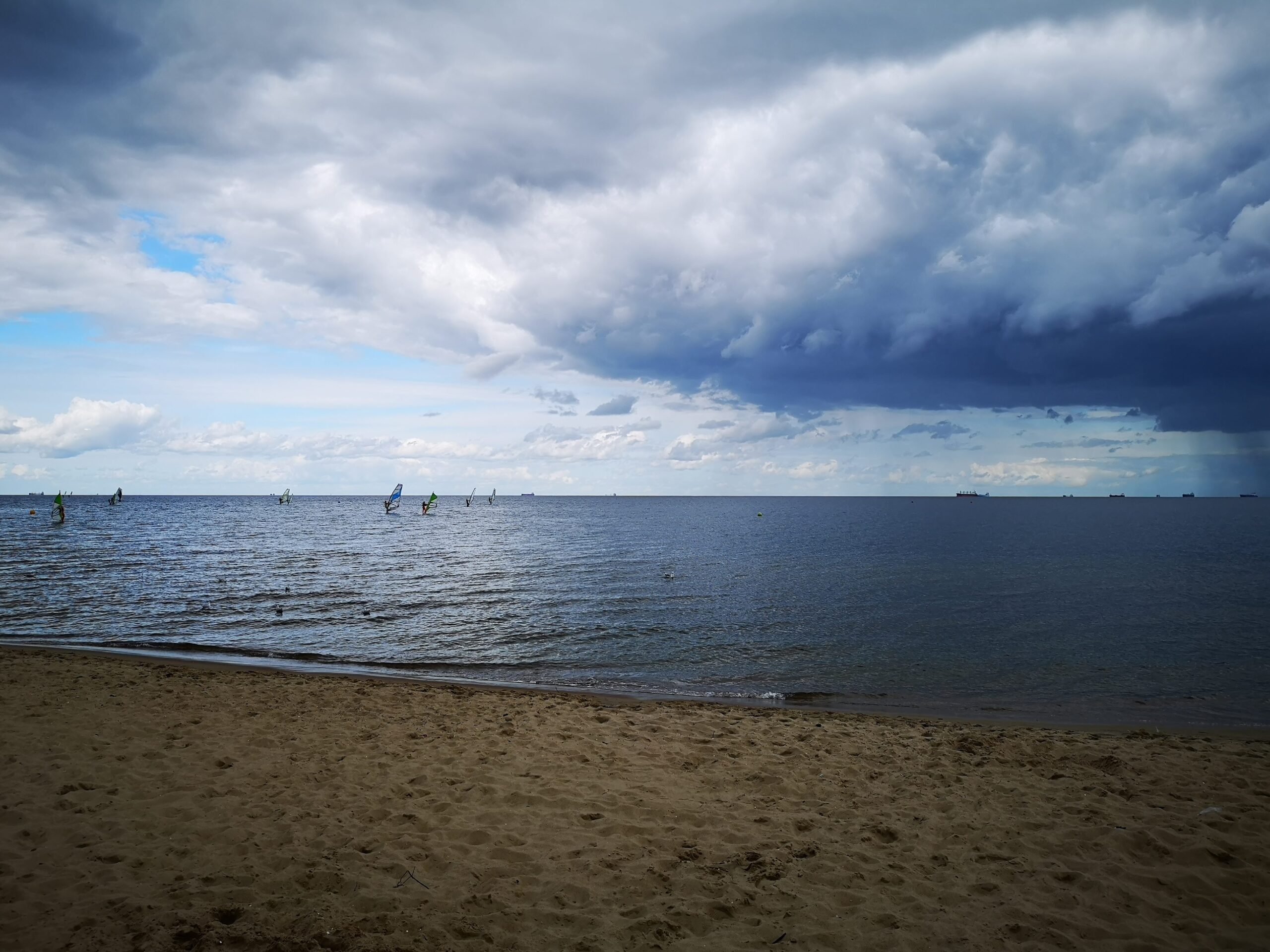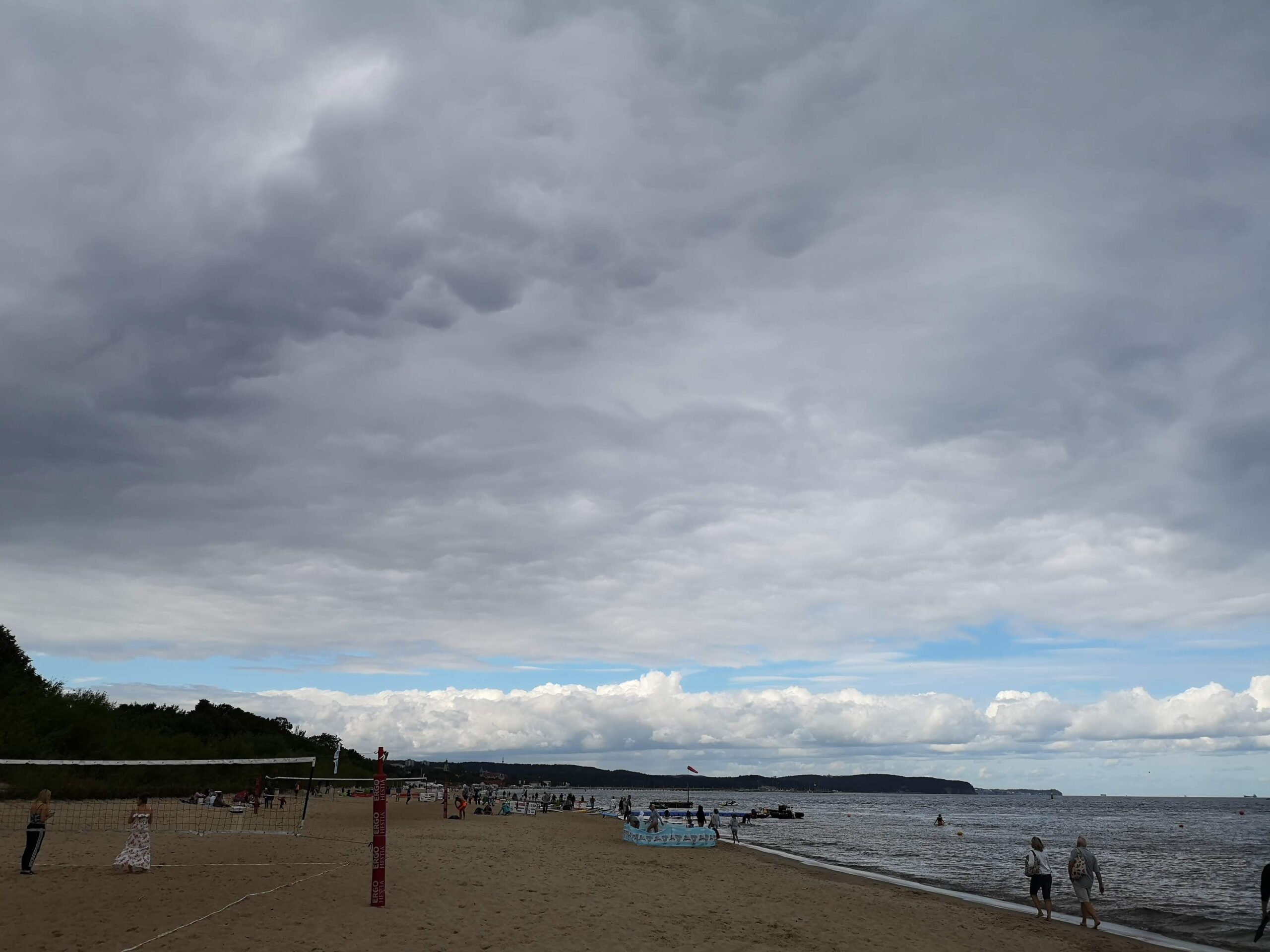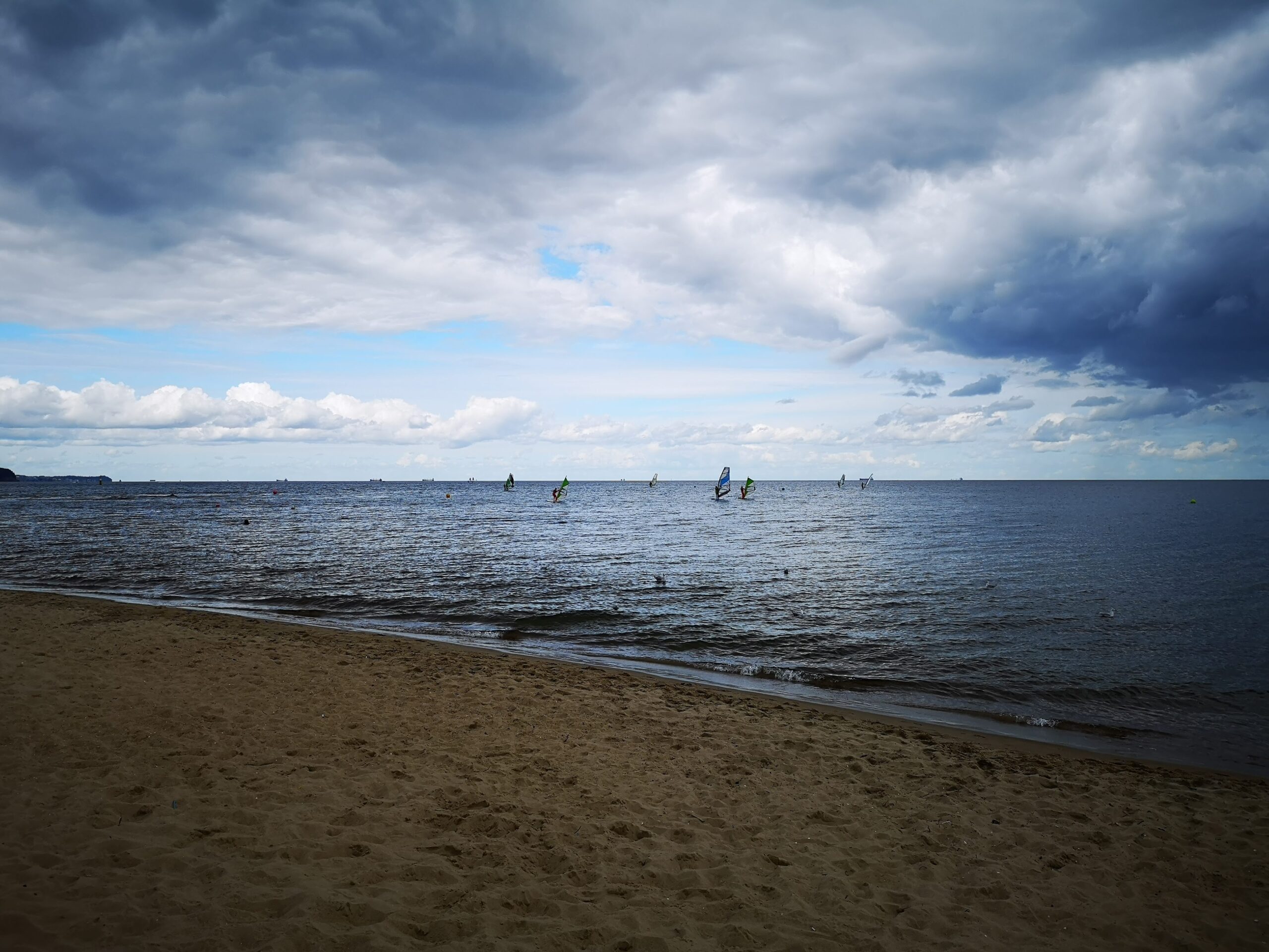 W niedzielne popołudnie udało się wyrwać na kilka minut na plażę. Co prawda kąpieli nie uświadczyliśmy, ale pogoda była na tyle łaskawa, iż można było powylegiwać się na leżakach. Z leżaków gdzies po godzinie nas grzecznie wyproszono, chyba tyle było limitu za kawę i lody 🙂 Słońce miło grzałom wiaterek chłodził. Nic nie padało , choć chmury chciały nas przekonać że będzie inaczej. Wypad udany.