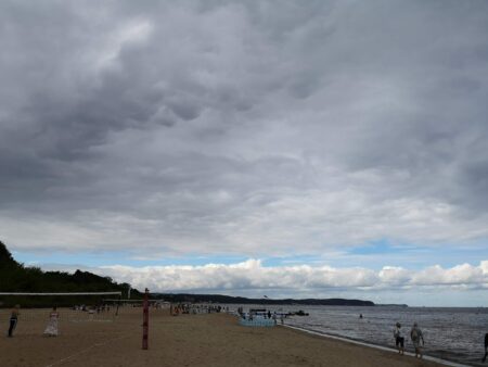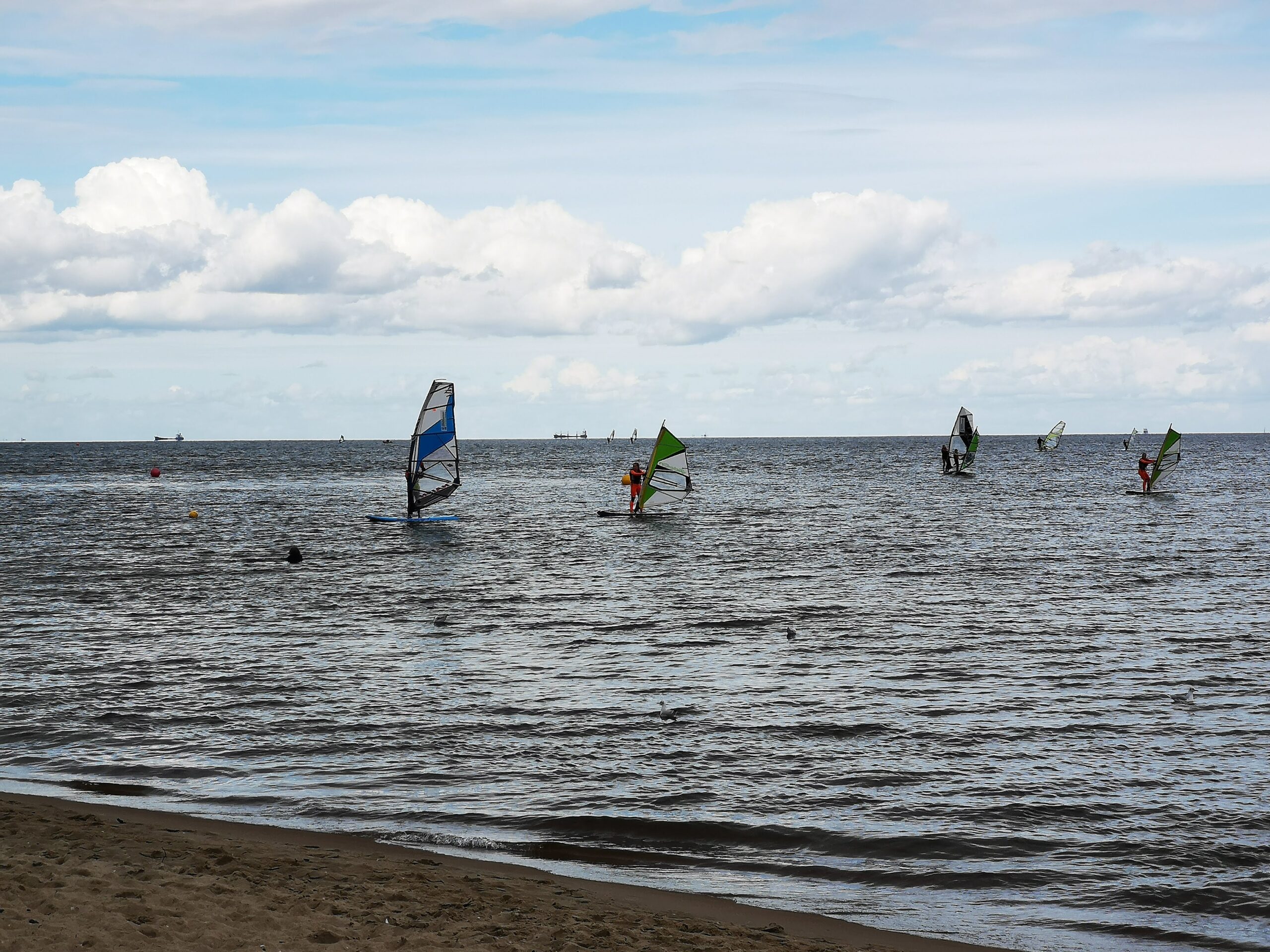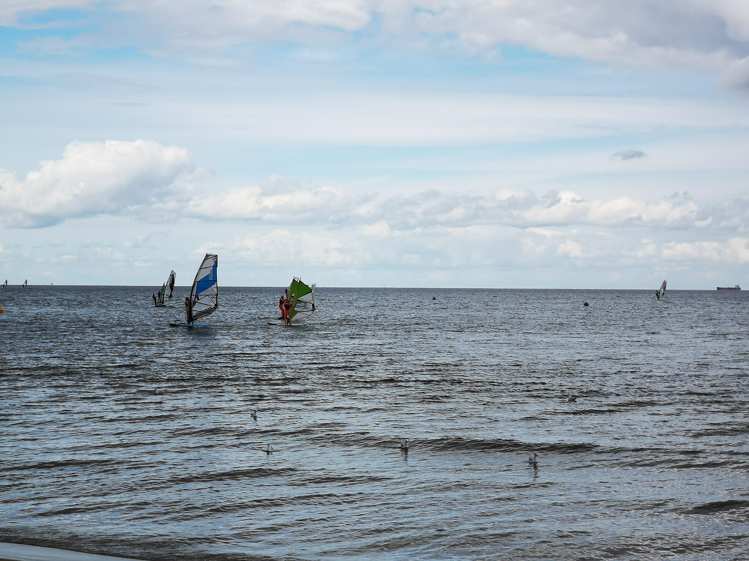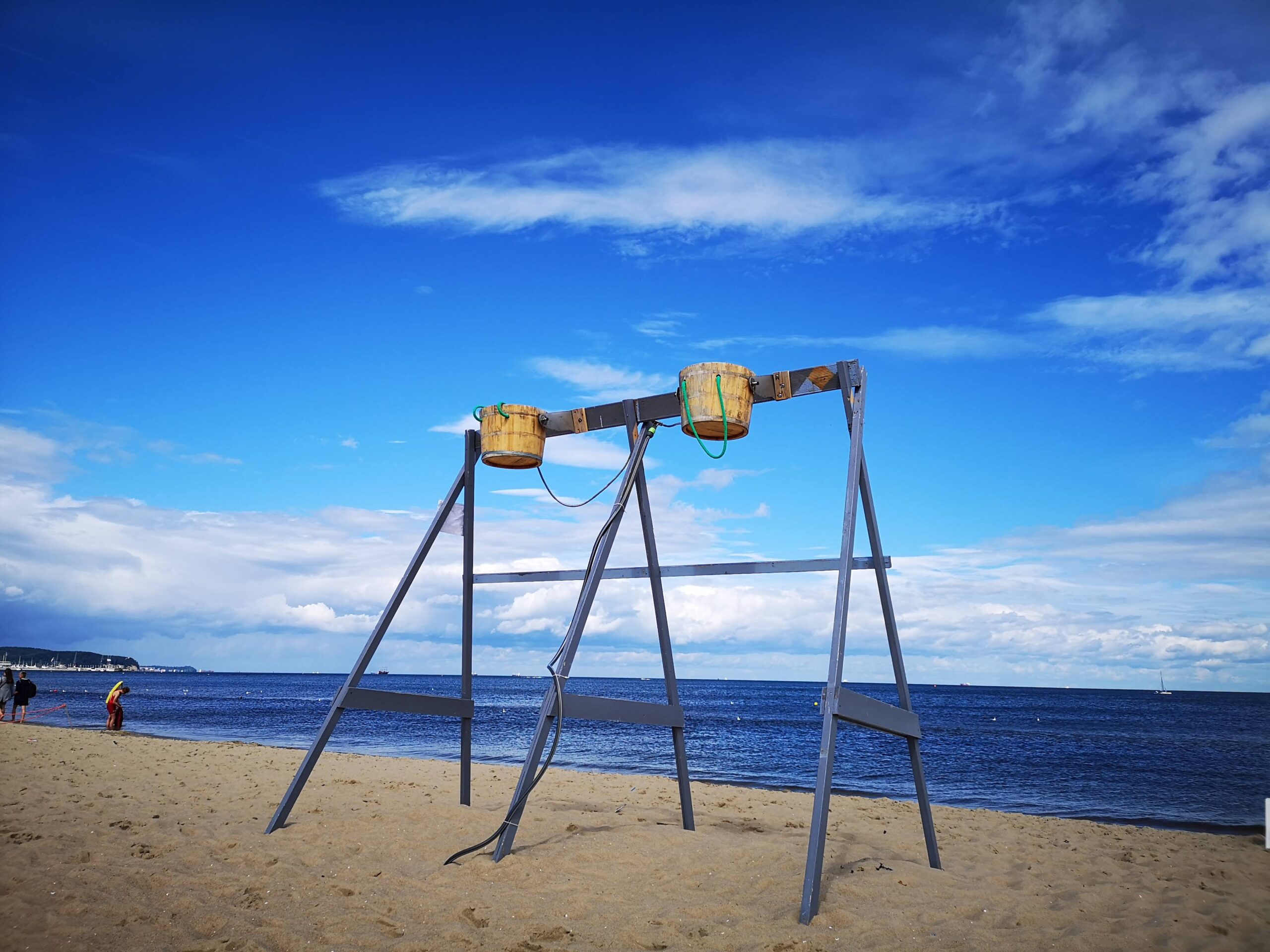 W niedzielne popołudnie udało się wyrwać na kilka minut na plażę. Co prawda kąpieli nie uświadczyliśmy, ale pogoda była na tyle łaskawa, iż można było powylegiwać się na leżakach. Z leżaków gdzies po godzinie nas grzecznie wyproszono, chyba tyle było limitu za kawę i lody 🙂 Słońce miło grzałom wiaterek chłodził. Nic nie padało , choć chmury chciały nas przekonać że będzie inaczej. Wypad udany.